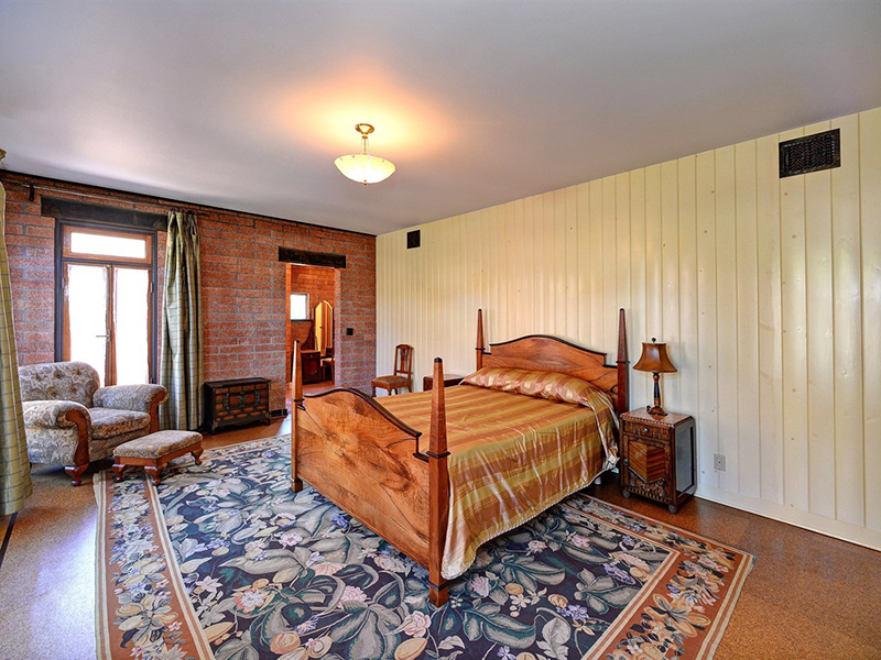 Exterior and interior walls of exposed concrete masonry units are made from recycled bricks, and concrete and cork floors contribute to sustainability. A combination of industrial elements (concrete block, exposed structural-steel beams, copper plumbing pipes used as handrails), along with stained tongue-and-groove sheathing on the walls and the use of architectural salvage (for plumbing fixtures, door hardware and lighting fixtures) give this home the feeling of a traditional territorial home.