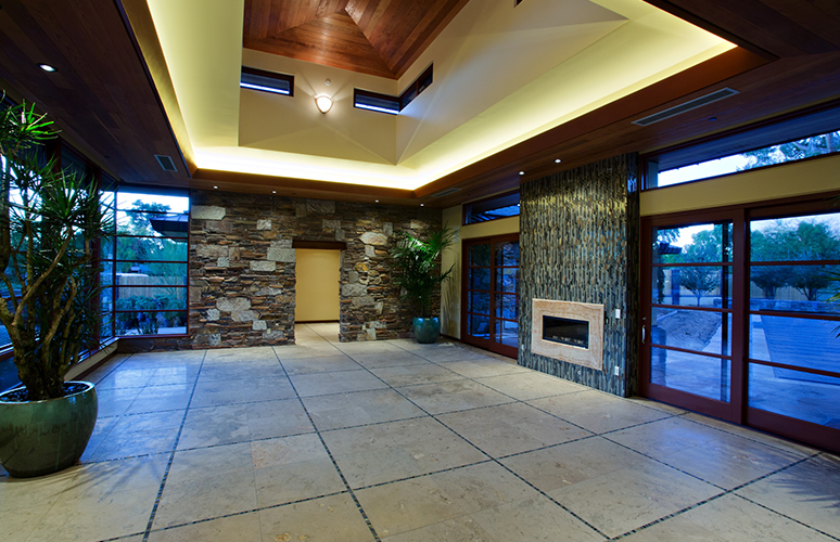 We are very happy with the final product. We have a human-scale, livable home, with a combination of natural materials that speak to us. We love how the individual elements react to the changing seasons: The way the daylight plays on the exterior stone changes hourly, and with so many large corner windows, the views are a constant source of delight. The continuation of exterior elements into the interior is truly delightful, and the exterior lighting at night is understated, yet spectacular. We love the ambiance; it's comfortable, yet elegant, without being a museum. There's a sense of peace that pervades.