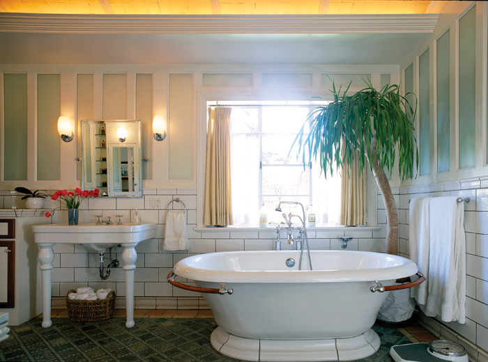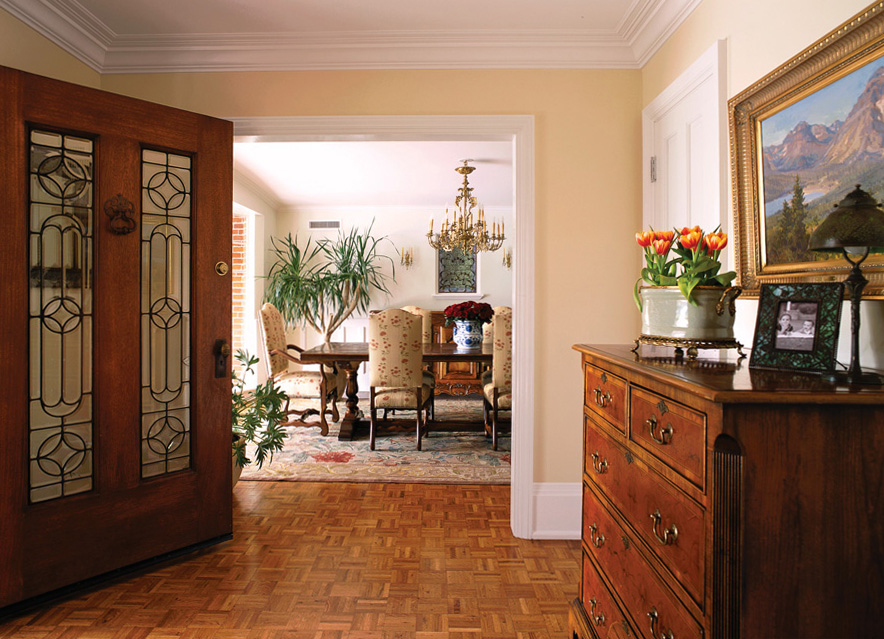 We love tradition, so we wanted our home to remain true to the spirit of its 1946 beginnings, and become an apt backdrop for our collection of vintage art and antique furnishings. We wanted to do a complete renovation with restoration, as opposed to demolition and starting over. Clyde reclaimed a lot of material and existing fixtures, integrating it with the new. He came up with an abundance of special details, all subtle, which worked well for us.