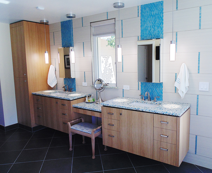 This project, a remodel of a sixty-year-old home, created a small addition to the original footprint to accommodate a larger master bathroom, closet and updated laundry room.
