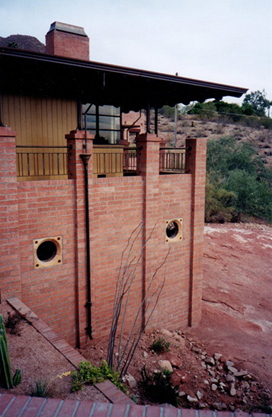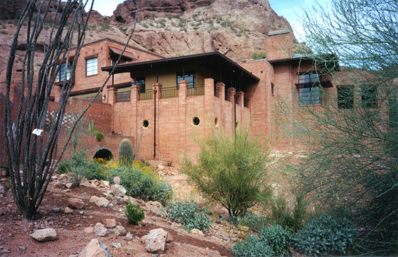 This home was designed and built for a couple, both members of pioneer Arizona families with an appreciation of their Western heritage. On a one-acre lot on the south side of Camelback Mountain, the site offered a dramatic red-granite setting that evokes prehistoric land forms. Because of the difficulties of building on it, this steep, rocky hillside lot had changed hands several times since the creation of the subdivision in the early 1970s. Built in 2001, it was the last lot in the subdivision to be finished.