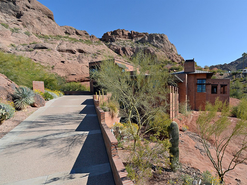 To provide open views of the stunning red rocks at the head of Camelback Mountain, power lines and poles that supplied neighbors were relocated to comply with both municipal and utility-company regulations. The rerouting process involved trenching through solid rock to put conduit two feet underground and entomb it in concrete.